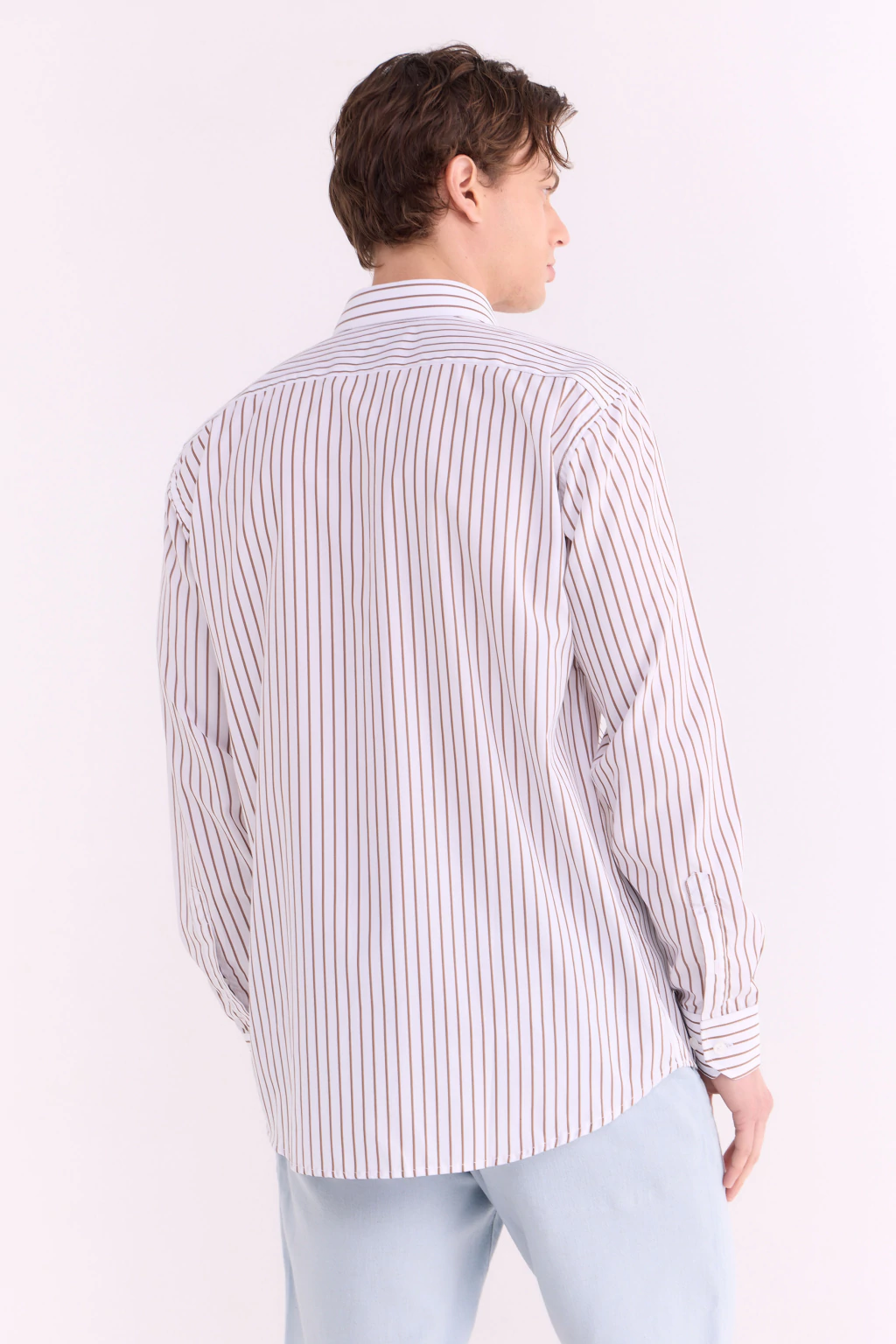 Camisa de manga larga con corte clásico, diseñada con cuello sin botón al estilo de las camisas italianas. Confeccionada en un tejido de calidad que aporta confort y caída natural. Presenta el logo de la marca bordado al tono en el frente, aportando un detalle sutil y elegante. Una prenda versátil y sofisticada, ideal para lucir tanto en ocasiones formales como en conjuntos más relajados.