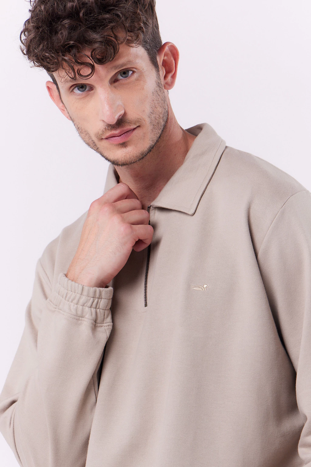 Buzo de rústico con cierre cuello polo. Identificación de marca bodado al tono. Puños en mangas. Este tipo de prenda se convirtió más que un básico en el guardarropas de hombre. Es una pieza ideal para acompañar todo tipo de looks.