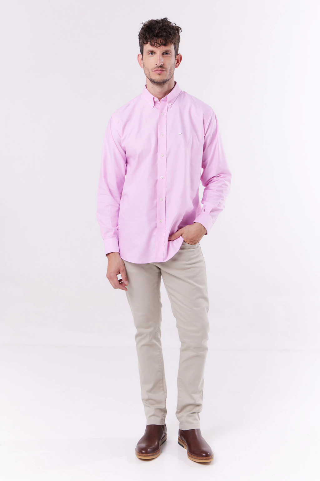 Camisa de corte básico confeccionada en 100% algodón, de calce holgado que brinda comodidad y frescura. Presenta cuello con botón en la punta y puños con cierre de botón. Incorpora un bolsillo plaqué en el delantero y una tabla en la espalda que aporta mayor amplitud y libertad de movimiento. Un clásico versátil, ideal para un look casual o formal.