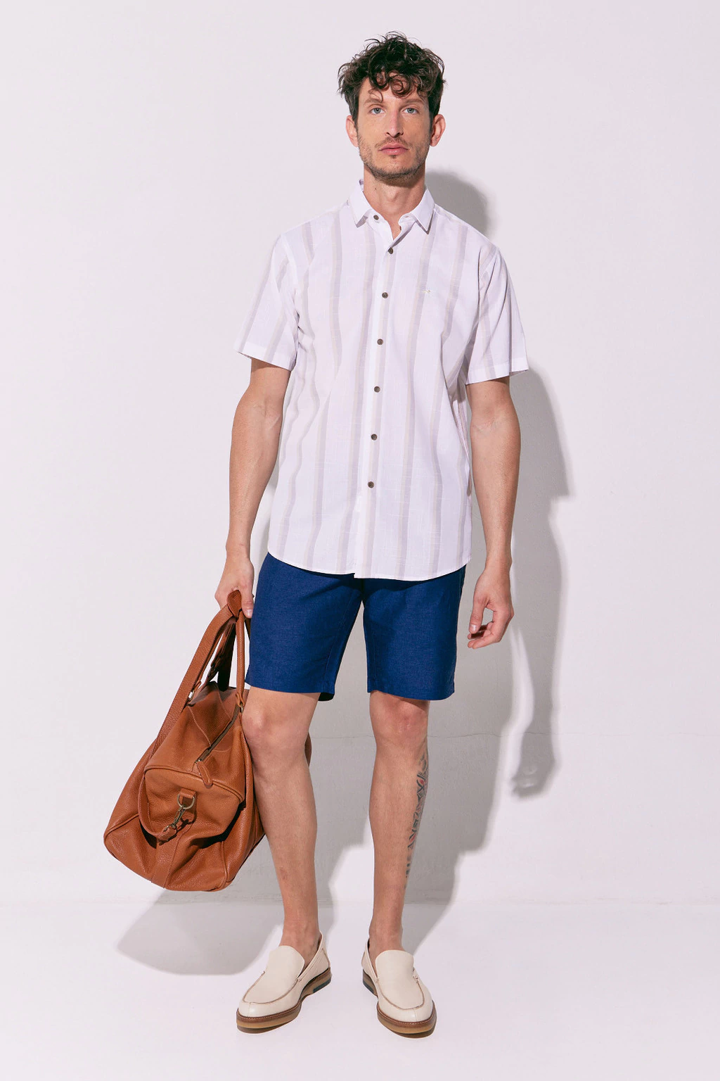 Camisa manga corta de lino. De corte amplio y cómodo. Para un look relajado, fresco y canchero. Podes usarla con bermudas y zapatillas. Con identificación de marca al frente.