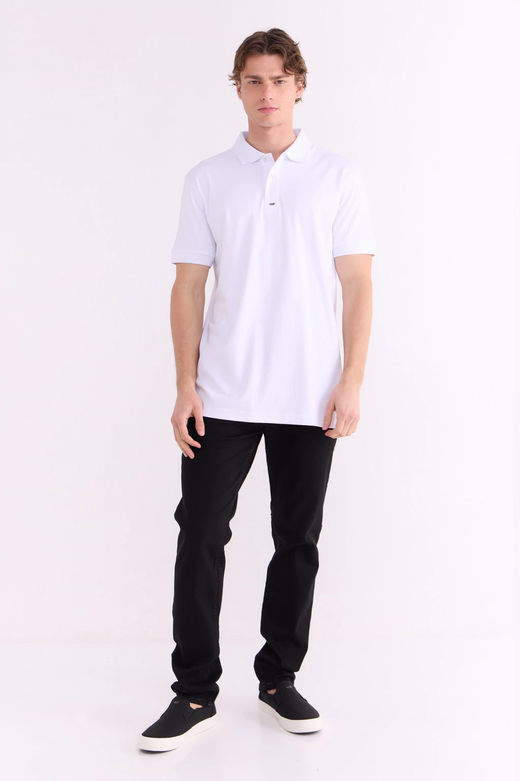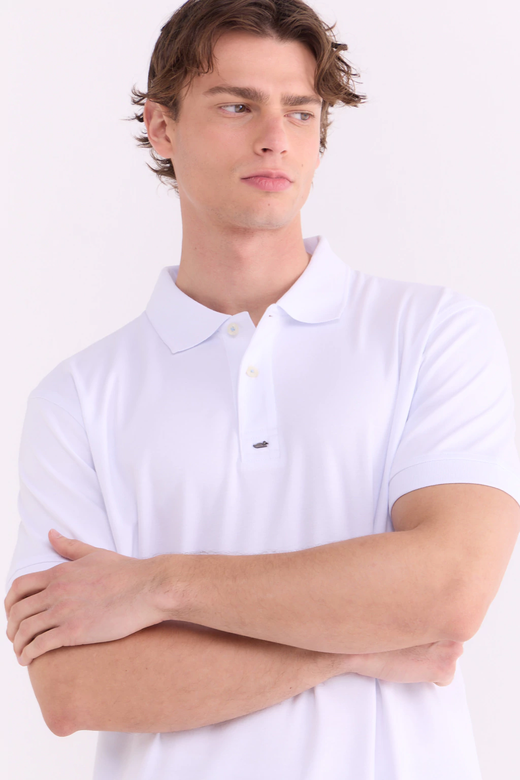 Chomba manga corta con cuello camisero de Interlock PIMA. Tejido de punto doble conocido por su suavidad, estructura estable y acabado liso. Con identificación de marca metálico al frente. Por su versatilidad es una opción para cualquier momento del día. Podes usarlo con jeans o bermudas para un look informal o con pantalones de vestir.