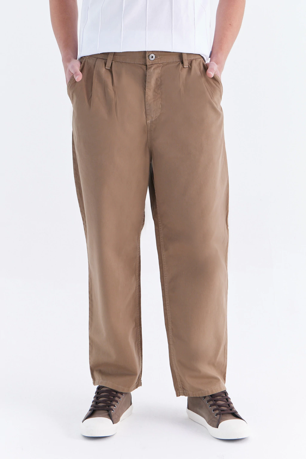 Pantalón baggy confeccionado en gabardina teñida. De calce holgado y pierna ancha, se caracteriza por una silueta amplia en caderas y piernas, brindando un estilo relajado y confortable. Ideal para un look urbano y desenfadado.